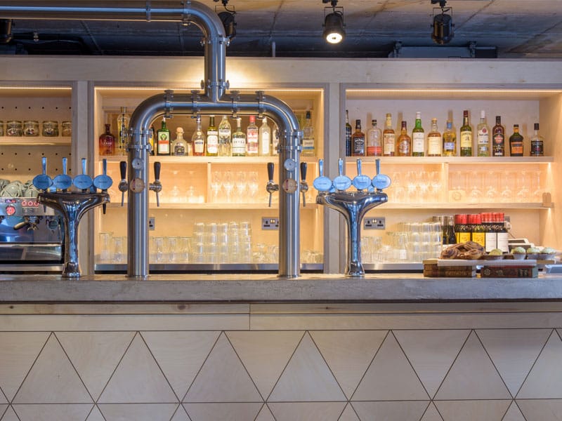 These were strategically installed to complement the overall feature lighting, offering a stylish and flexible lighting solution for both the bar and seating areas.