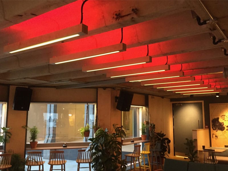 The fully controllable RGB LEDs allowed the client to adjust the ambiance, creating a dynamic environment with a spectrum of colours.